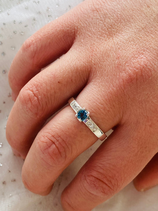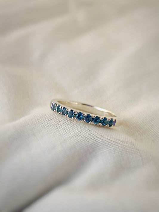 ANILLO "ATENEA" TOPACIO LONDON BLUE Y MOISSANITAS
