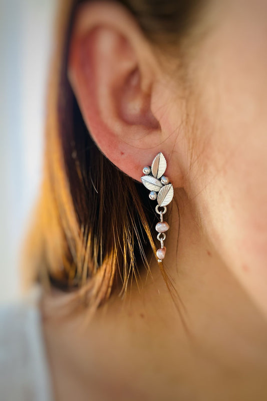 ¡DESCUENTO!Aros Trepadores Natura Silueta Perla Rosada