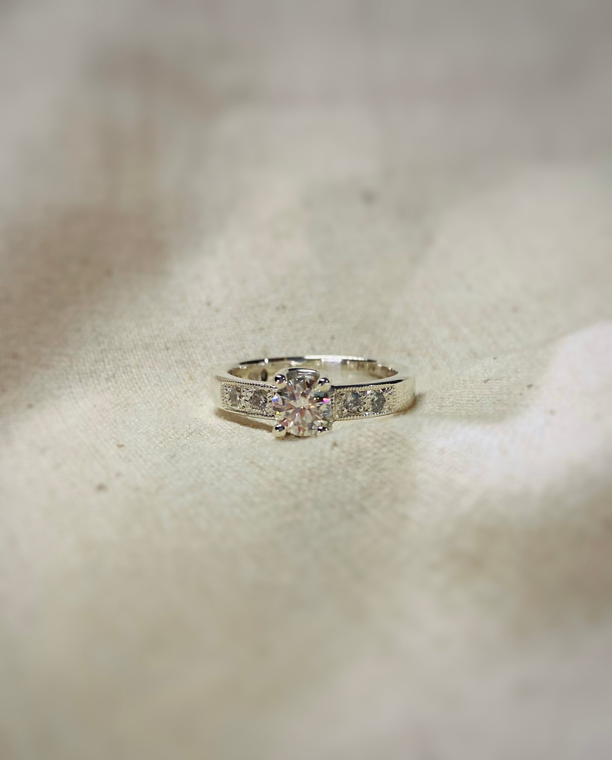 Extra brillo para este especial anillo hecho a mano con una elegante Moissanita central de 5mm, rodeada de zafiros facetados. ¡No pasará desapercibido!
