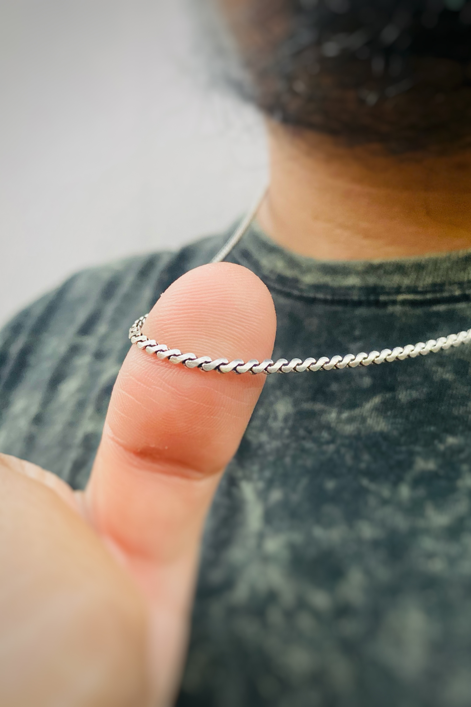 Una cadena tipo duenza envejecida o ennegrecida de largo 60 cms.
